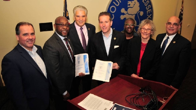 Pictured from left to right are District 5 Freeholder Carlos Pomares, District 2 Freeholder Vice President Wayne Richardson, Essex County Executive Joseph N. DiVincenzo, Jr., Freeholder At-Large President Brendan Gill, District 3 Freeholder Tysham....